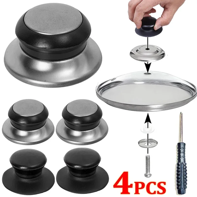1/4 Uds. Perillas de tapa de olla de cocina, tapa de repuesto, manijas de agarre manual, tapa de sartén Universal, tapas de sujeción, herramientas resistentes con destornillador