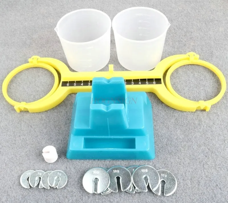 1 Juego de balanzas simples para estudiantes, equipos científicos experimentales, instrumentos de enseñanza, balanzas de plástico con pesas