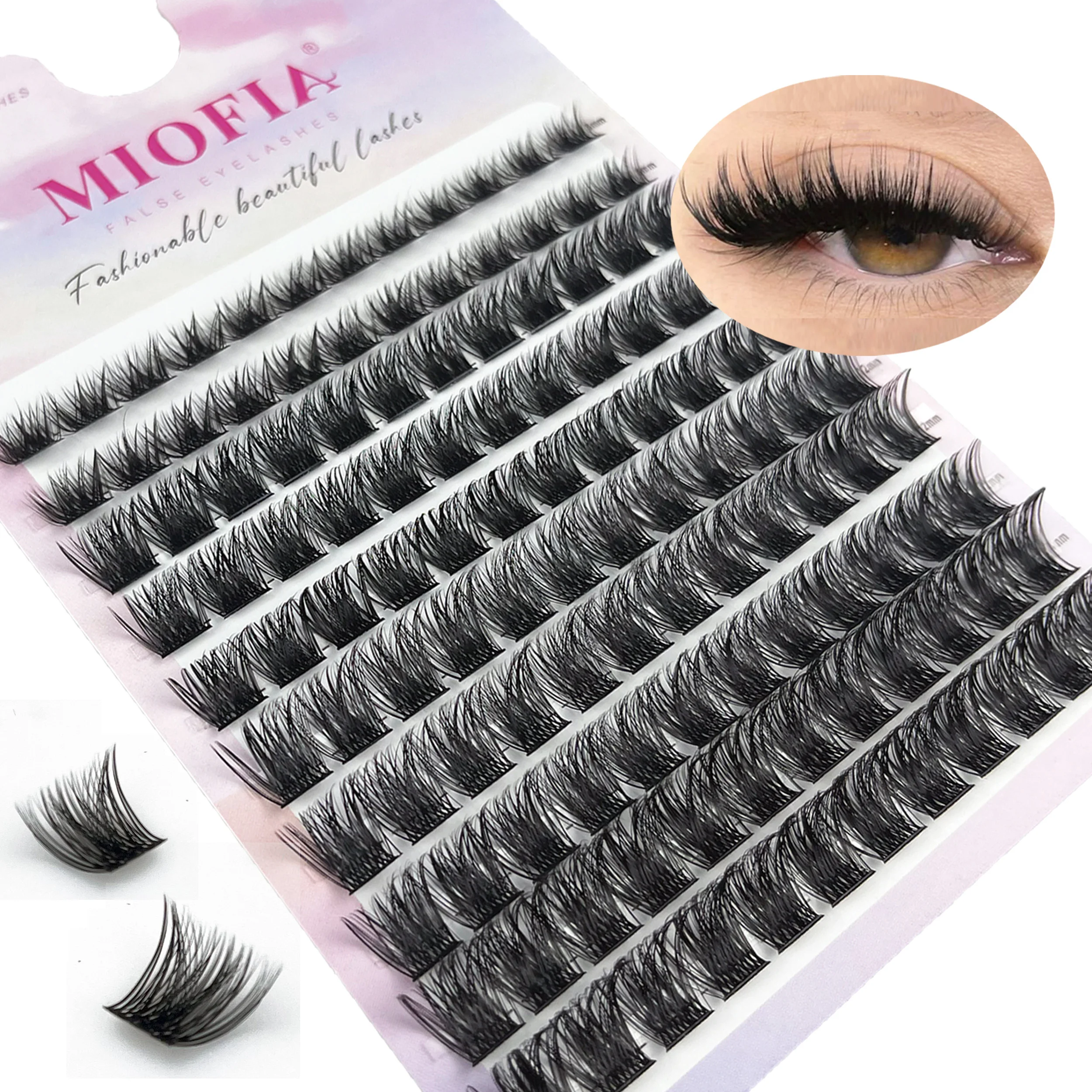 10 filas de pestañas individuales, racimo D Curl, 8-14mm de longitud mixta, pestañas segmentadas finas naturales, herramienta de maquillaje para extensión de pestañas DIY