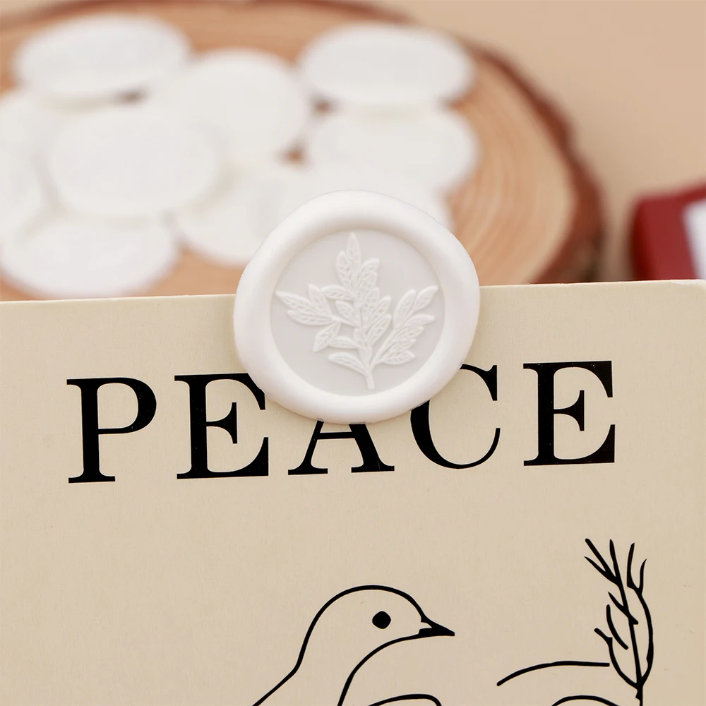 10 Uds. De pegatinas de sello de cera de eucalipto, pegatinas de sello de cera autoadhesivas de boda de plantas blancas, decorar invitación de boda