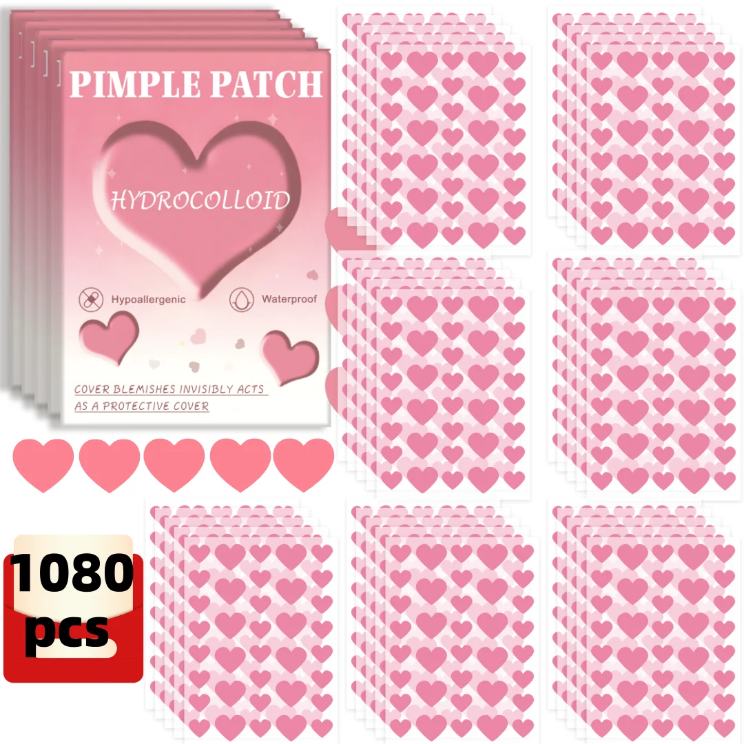 1080 piezas de parches rosas para el acné en forma de corazón, parches para el acné facial, parches corrector para el acné y parches para espinillas, ultrafinos y