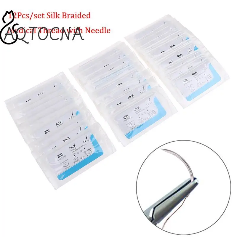 12 Uds Dental quirúrgico 75cm 3/0 4/0 5/0 aguja médica hilo de sutura Kit de práctica de sutura enseñanza demostraciones ejercicios