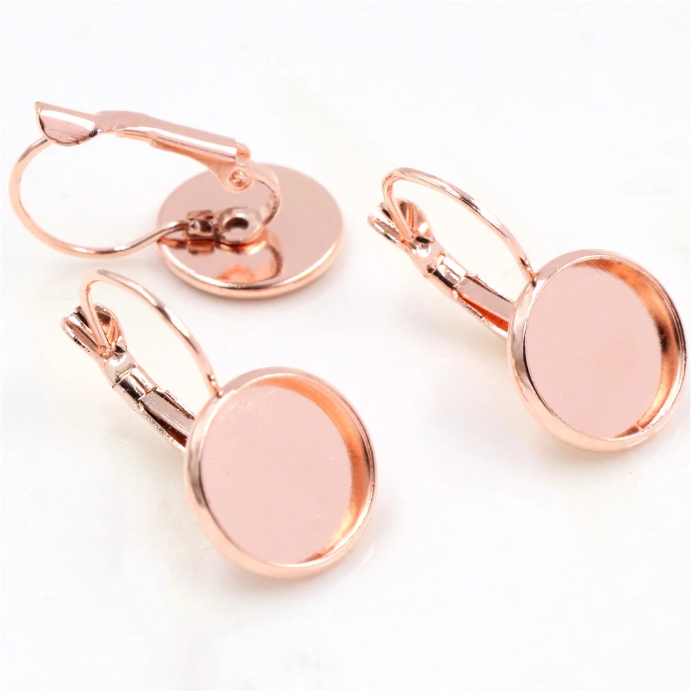 12mm 10 unids/lote pendientes traseros de palanca francesa en blanco/Base, cabujones de cristal de 12mm, botones; biseles de pendientes