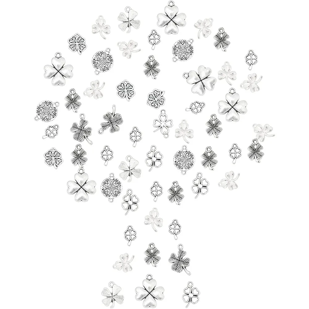 140 Uds., 10 estilos, dijes del Día de San Patricio, conector de aleación tibetana de trébol C de cuatro hojas de la suerte a granel para kit de fabricación de collares