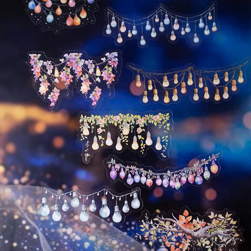 16 hojas/bolsa de pegatinas para mascotas, bolsa, macetas, flores, ventanas, luces de estrellas, pegatinas de cuenta de mano, decoración creativa de tarjetas de felicitación DIY