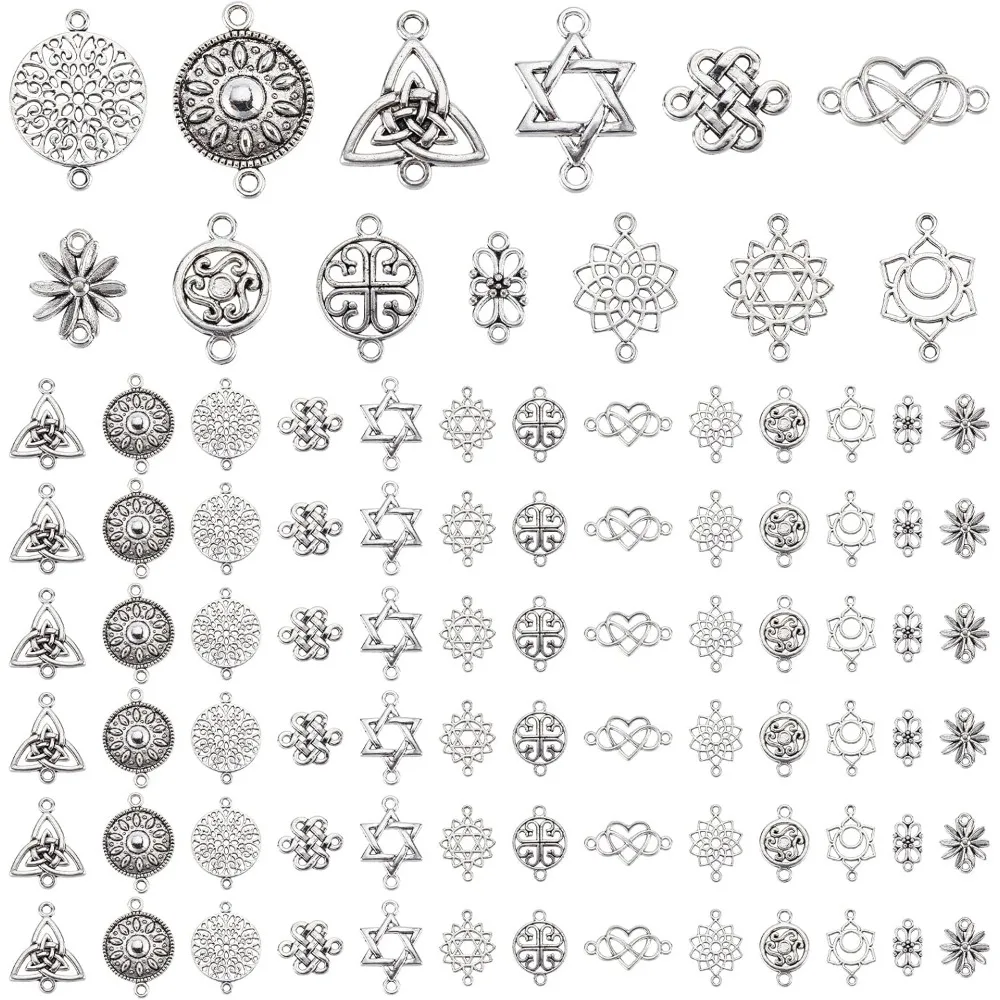 195 Uds. De dijes de nudo Trinity, colgantes de conector de 13 estilos, dijes de flores Wiccan, conectores de Chakra de corazón, eslabones para hacer kit