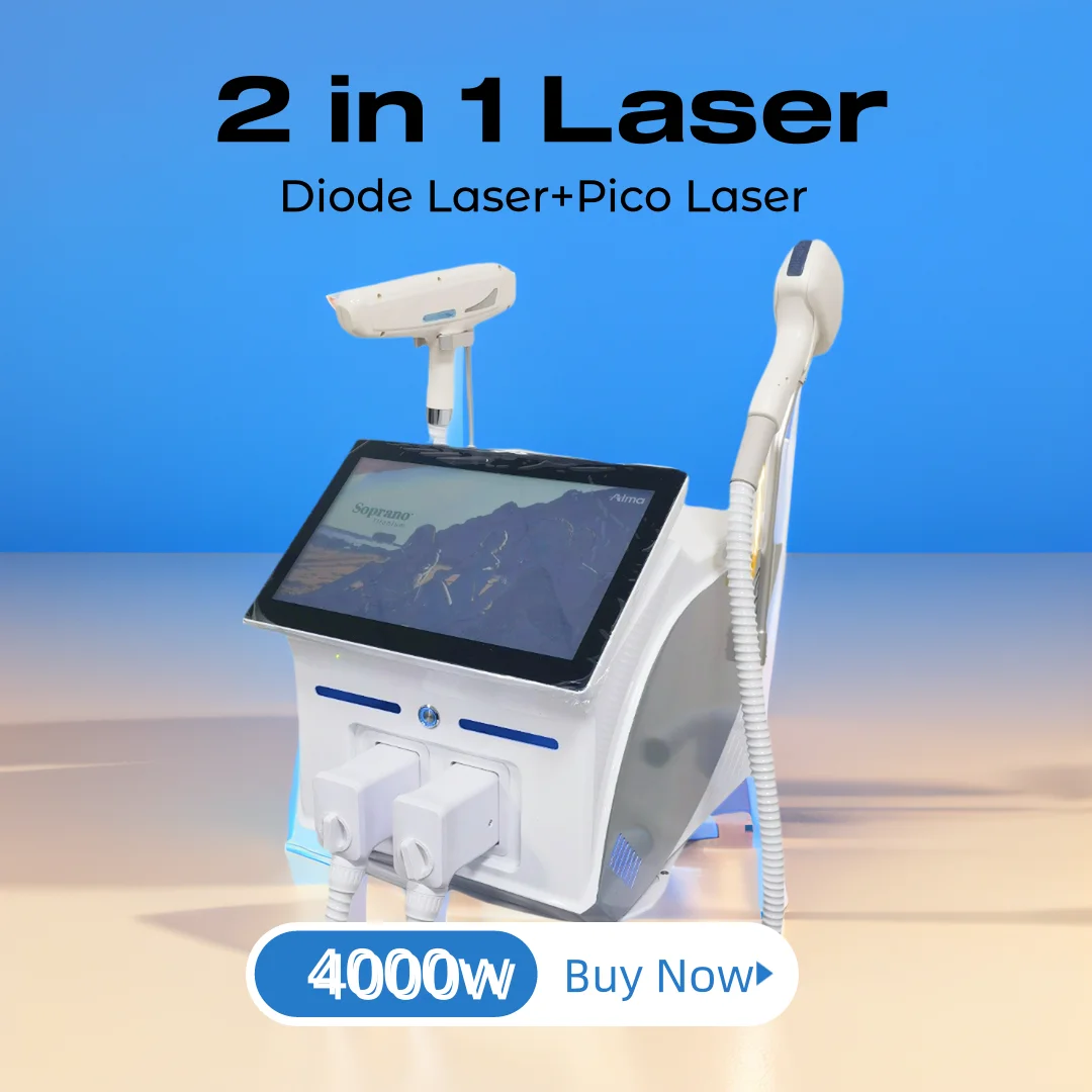 2 en 1 4000W Soprano Titanio Hielo Platino Diodo 755 808 1064nm 4 Longitud de onda Máquina láser Indolora