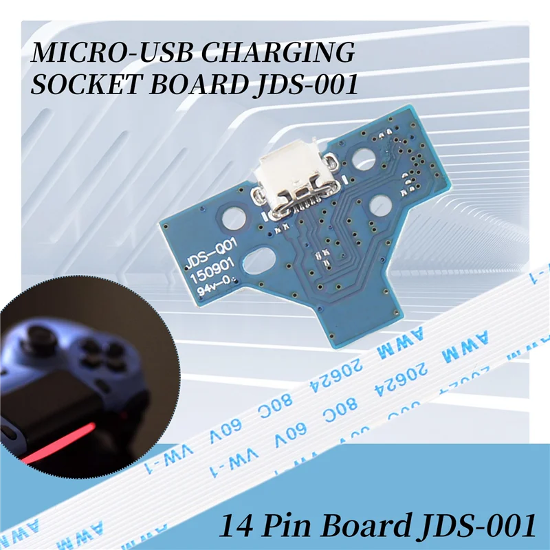 2 juegos para Playstation 4 para piezas de repuesto del controlador PS4 con Cable de 14 pines puerto de carga USB JDS-001-ABFT