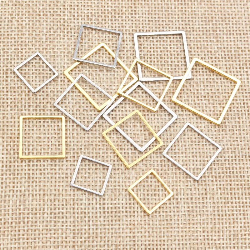 20 piezas de 3 tamaños de encanto cuadrado oro Acero inoxidable colgante abierto biseles hueco prensado resina marco molde bisel DIY fabricación de joyas