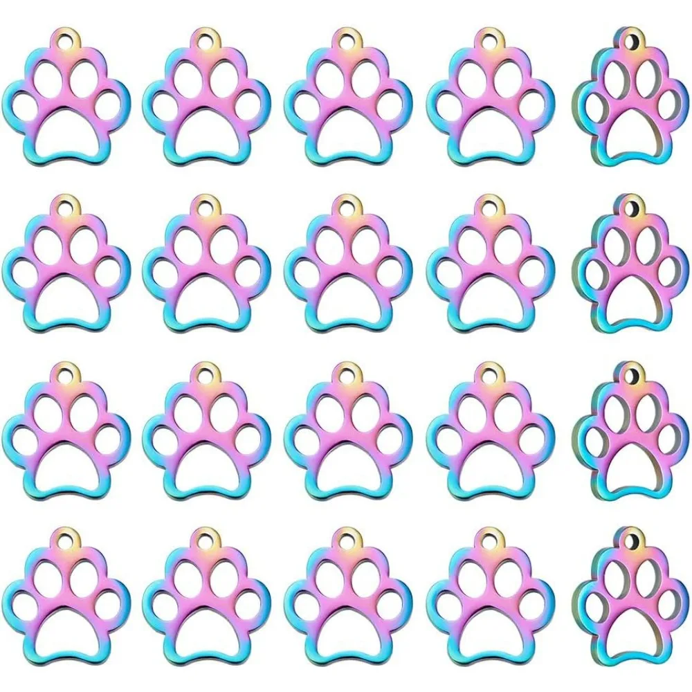 20 piezas dije de pata de acero inoxidable, colgante de huella de perro, gato, Animal, colgante de Metal, kit de fabricación hueca con agujero pequeño de 1,5mm