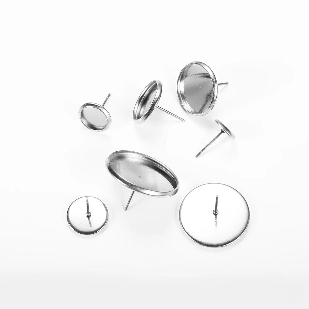 20 unids/lote de pendientes de acero inoxidable, accesorios de joyería de 6mm-25mm, cabujones de Base en blanco