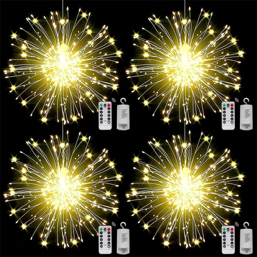 200 luces LED de cadena de fuegos artificiales para exteriores, 8 modos, estrella explosiva, alambre de cobre, luces de hadas, decoración de jardín, luces navideñas remotas