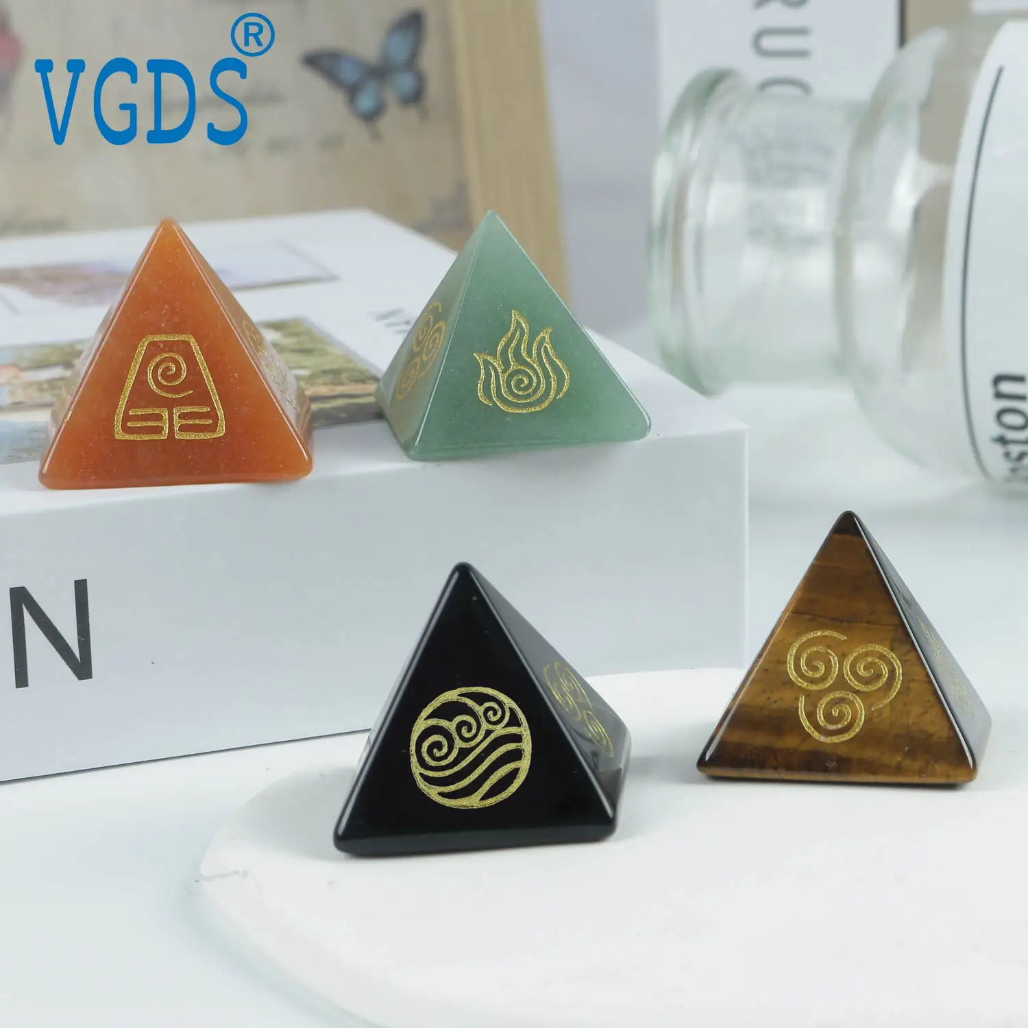 2025 gran oferta cristal Natural cuarzo amatista gema pirámide cuatro elementos aire agua fuego tierra símbolo energía joyería piedra curativa