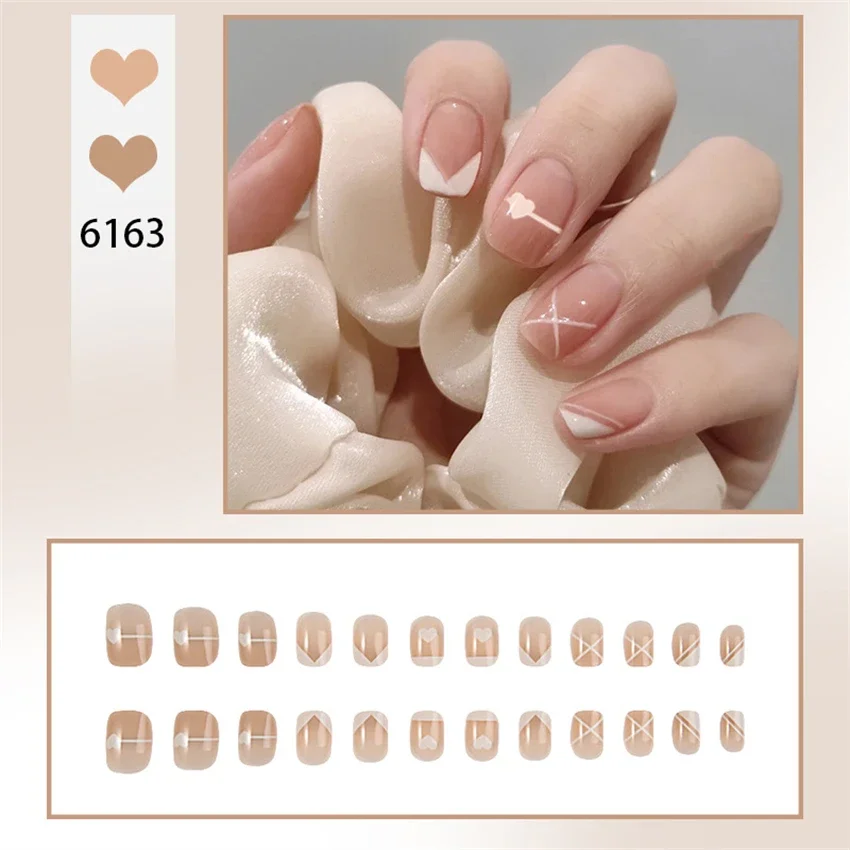 24 unids/set sensación Premium uñas postizas desnudas cortas acrílicas removibles usando uñas postizas francés cobertura completa prensa en Nail Art