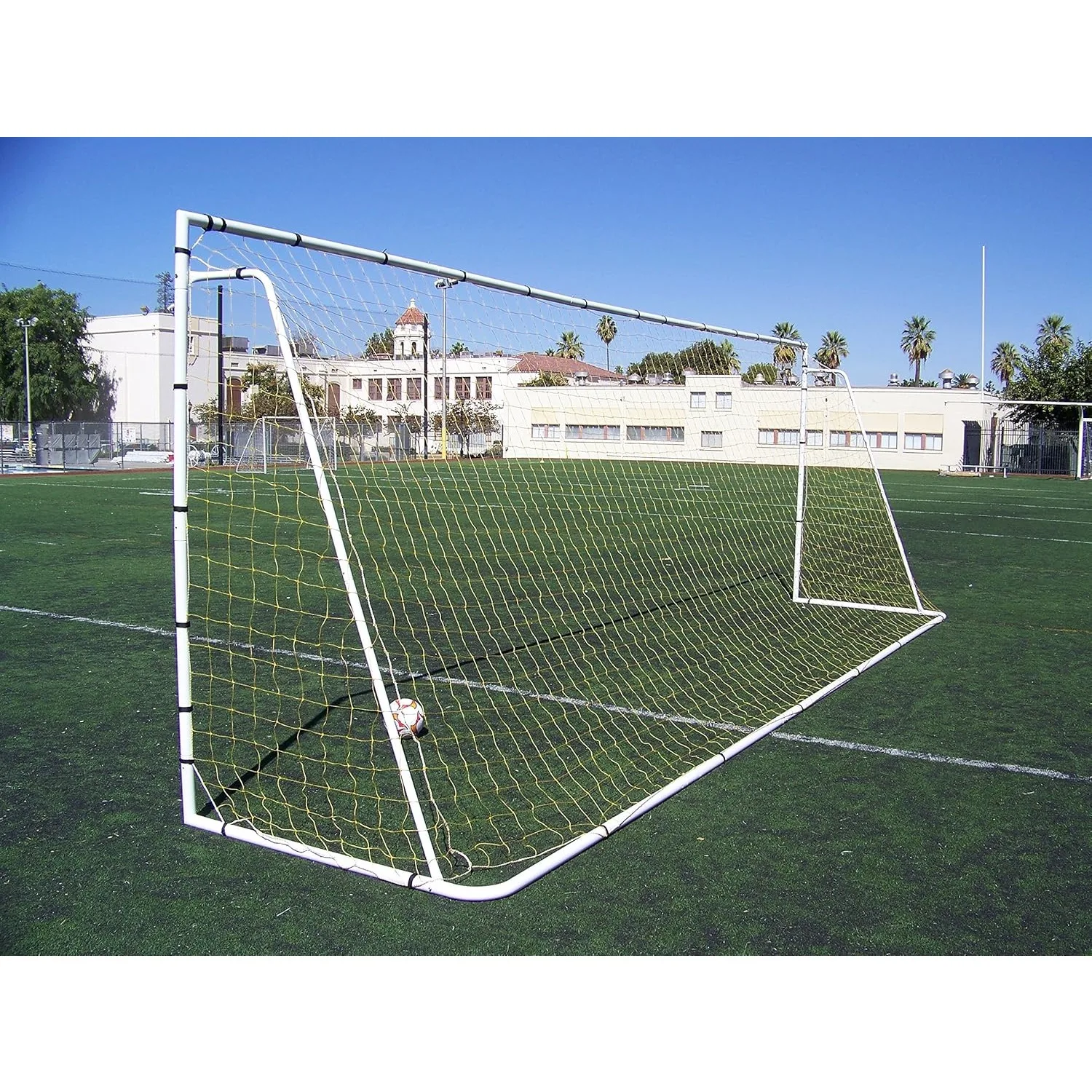 24 x 8 pies. Tamaño oficial. Portería de fútbol de acero resistente con red. Objetivos de tamaño de regulación. Ayuda de entrenamiento de práctica profesional