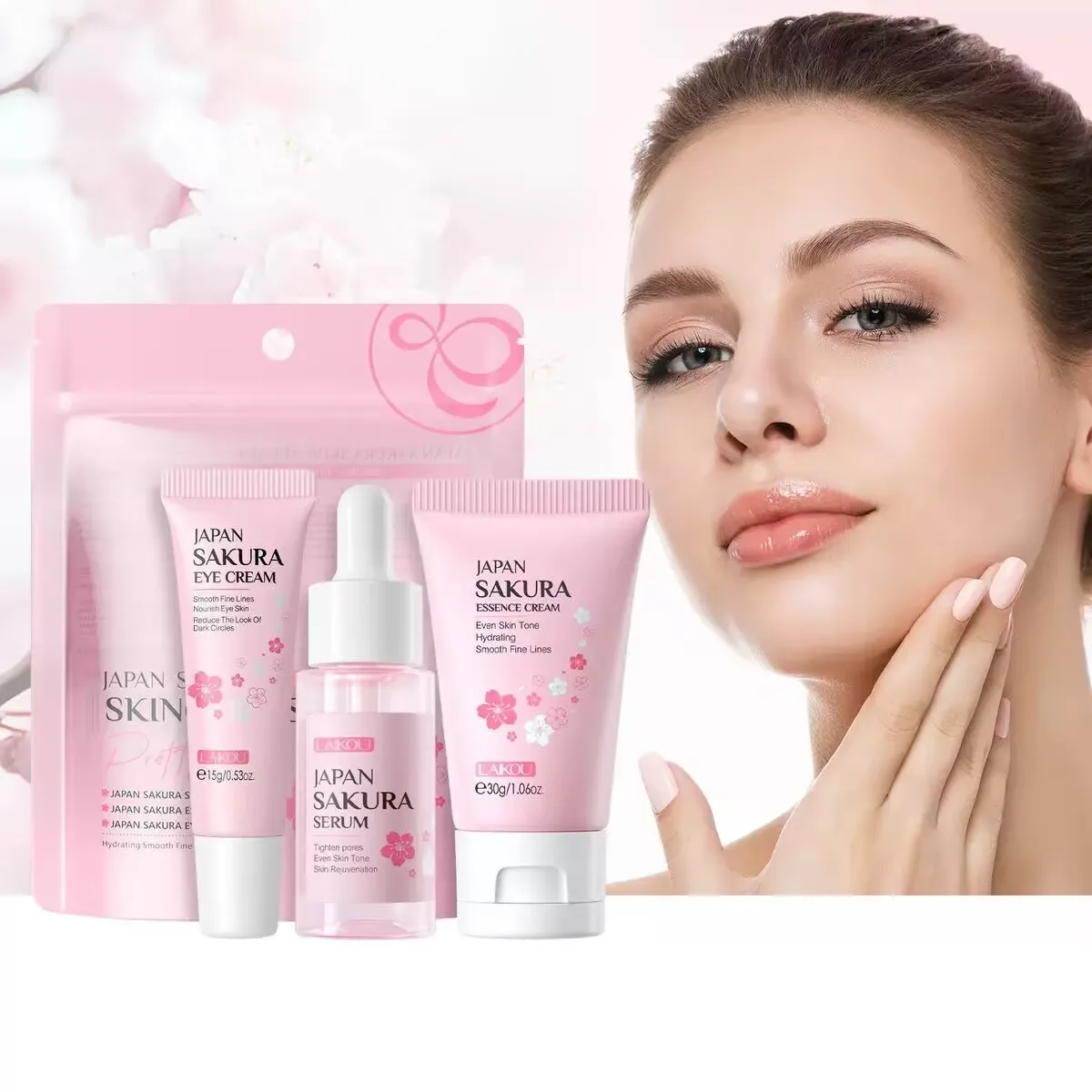 3 unids/set Japón Sakura conjunto de cuidado de la piel suero facial coreano crema de esencia hidrata reparación crema de ojos cosméticos conjunto de cuidado de la piel