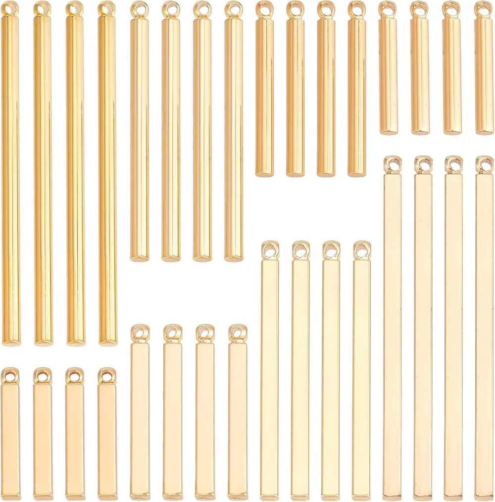 32 Uds. De dijes de barra de 8 estilos, colgante de barra Vertical de latón chapado en oro Real de 18K, estampado de dijes de Metal en blanco para kit de fabricación de joyas