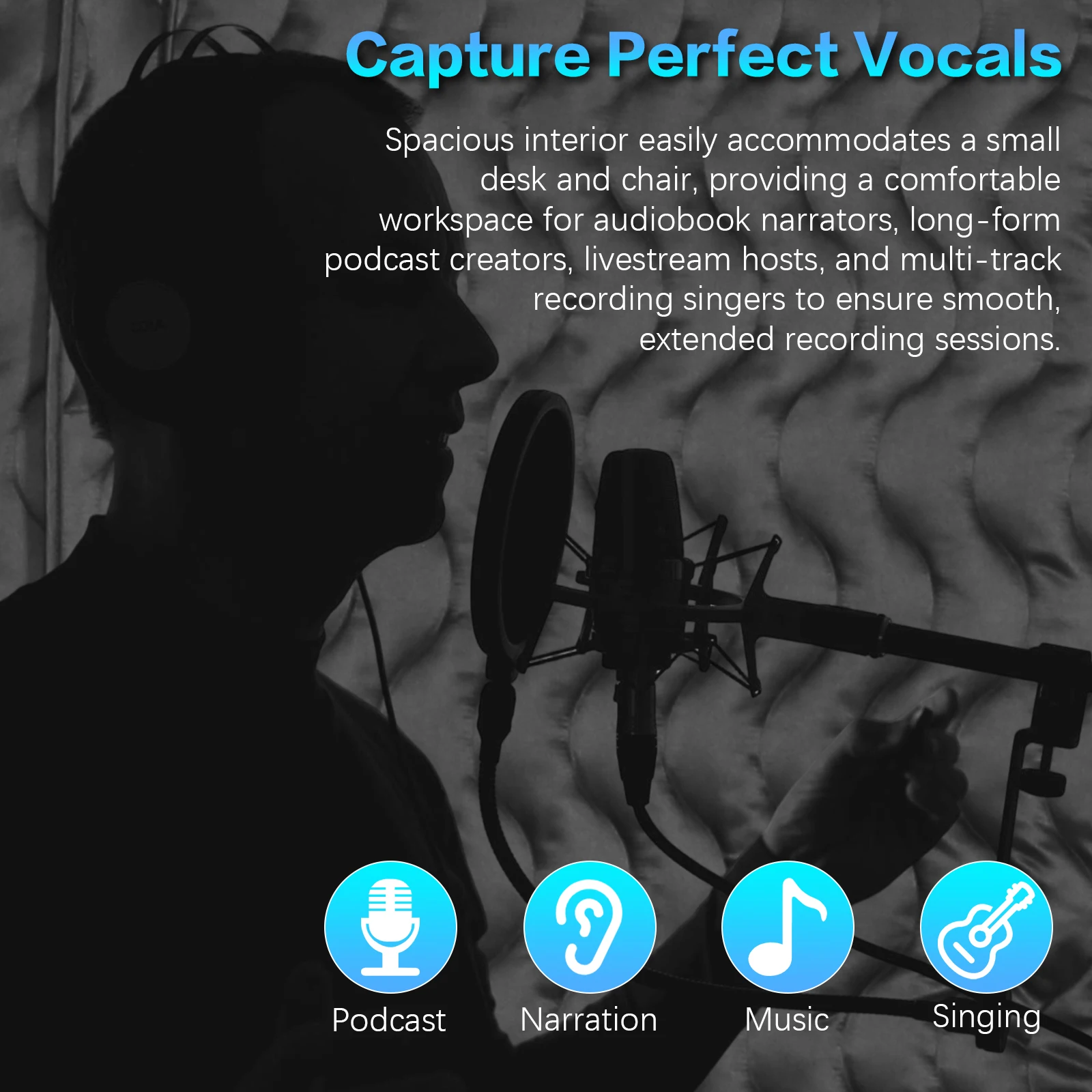 360 ° Cabina de Grabación Portátil, Fácil de Instalar, Cabina de Aislamiento Acústico con Mantas Acústicas Gruesas para Cantar en el Estudio, Podcast