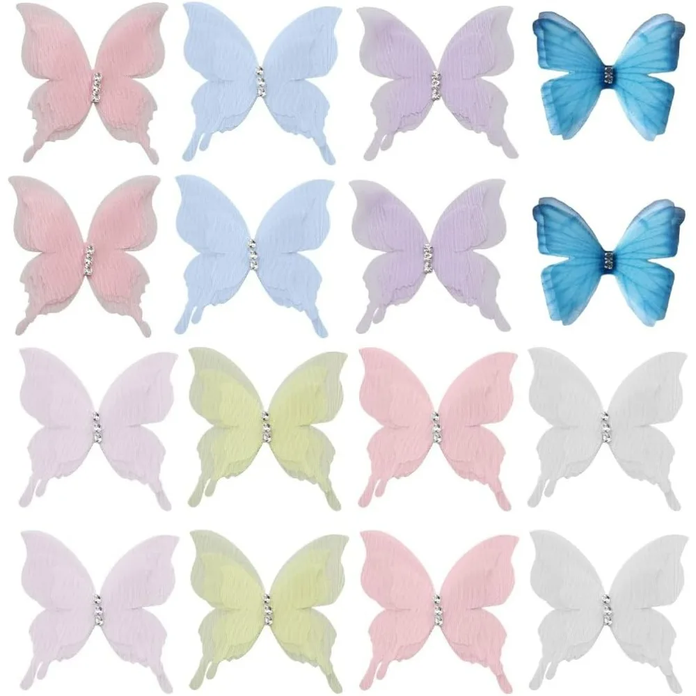 48 Uds mariposa de Organza tela ligera mariposas cinta de Triple capa dijes de diamantes de imitación apliques 3D kit de fabricación de pared