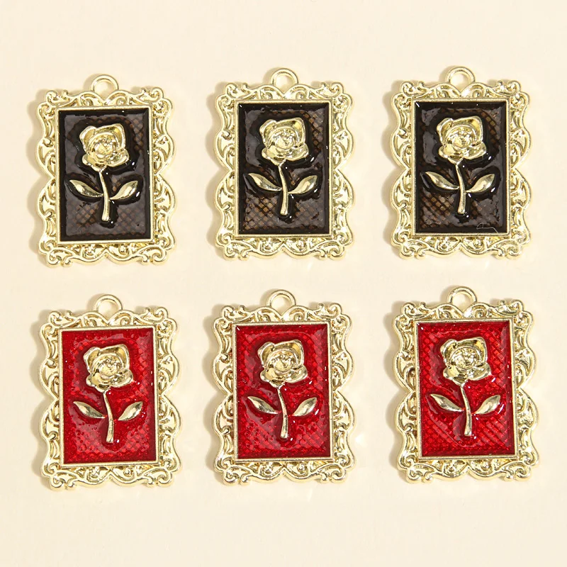 5 uds Color dorado 27,5x20mm romántico Rosa flor encantos regalos del Día de San Valentín colgante para DIY accesorios de fabricación de joyería hechos a mano