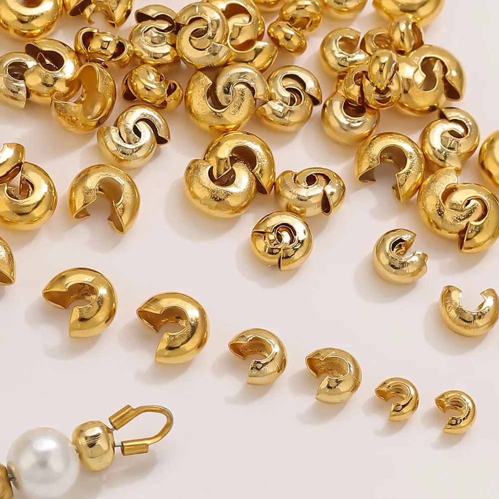 50 Uds. De cuentas redondas de acero inoxidable para prensar conectores de joyería, cuentas espaciadoras, accesorios para collar y pulsera DIY