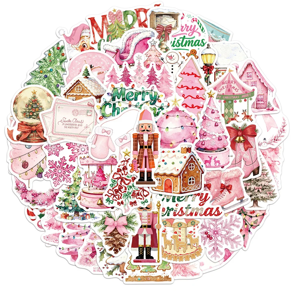 50 Uds. De pegatinas de grafiti de regalo de la serie 2 de Navidad rosa, pegatinas impermeables para equipaje DIY, cuaderno, taza de agua, ordenador