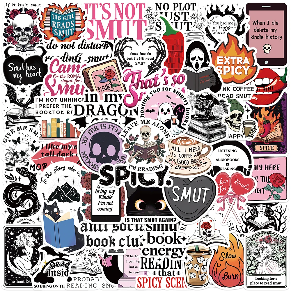 50 Uds. Lector de calaveras estéticas de dibujos animados Retro, pegatinas de Smut de bruja picante para ordenador portátil, botella de agua, equipaje, cuaderno, calcomanías impermeables