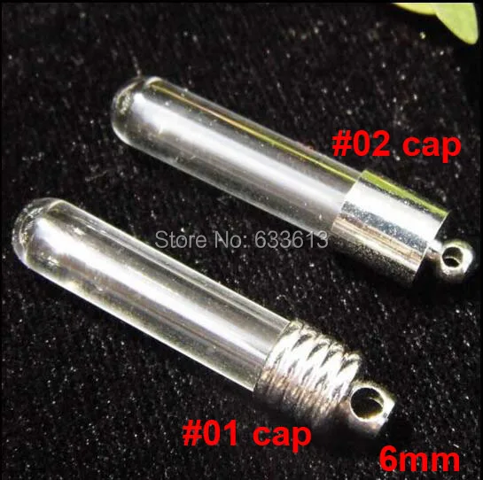 50pcs/lot 6mm diy clear mini tube glass Vial Pendant (silver color cap/mini/ bottle/ glass vials)