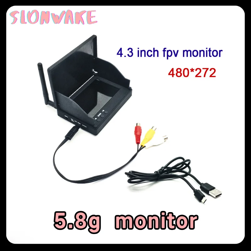 5,8G 48CH 4,3 pulgadas LCD 480*272px 16:9 NTSC/PAL FPV Monitor búsqueda automática con batería integrada OSD para Dron RC