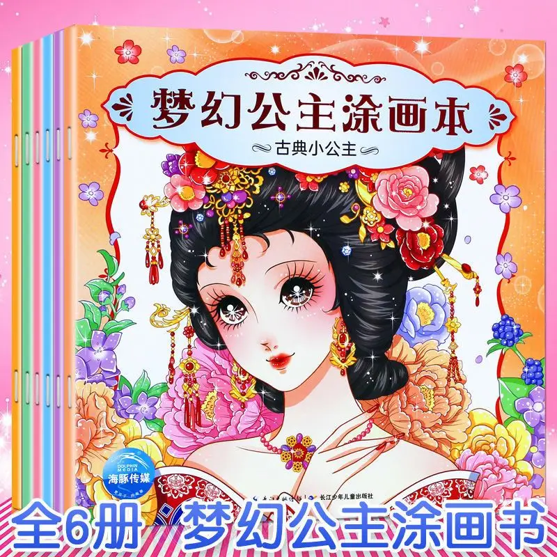 6 libros Dream Princess Libro de pintura para niños Hermosa niña Princesa Libro para colorear para adultos y niños
