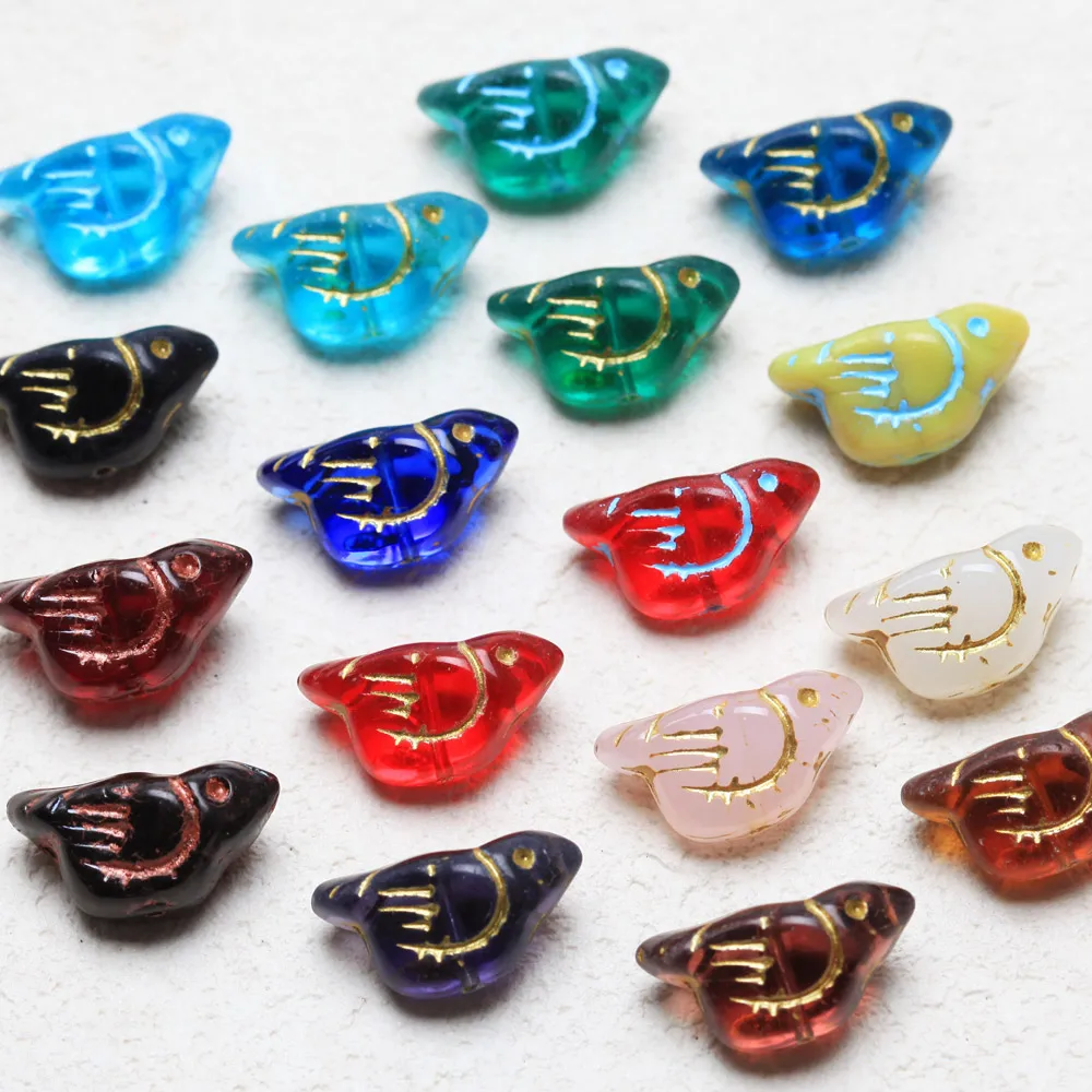 6 uds. De cuentas tridimensionales esmaltadas con forma de pájaro para hacer joyas, pulseras, collares, suministros, accesorios de vidrio DIY de 22x11mm