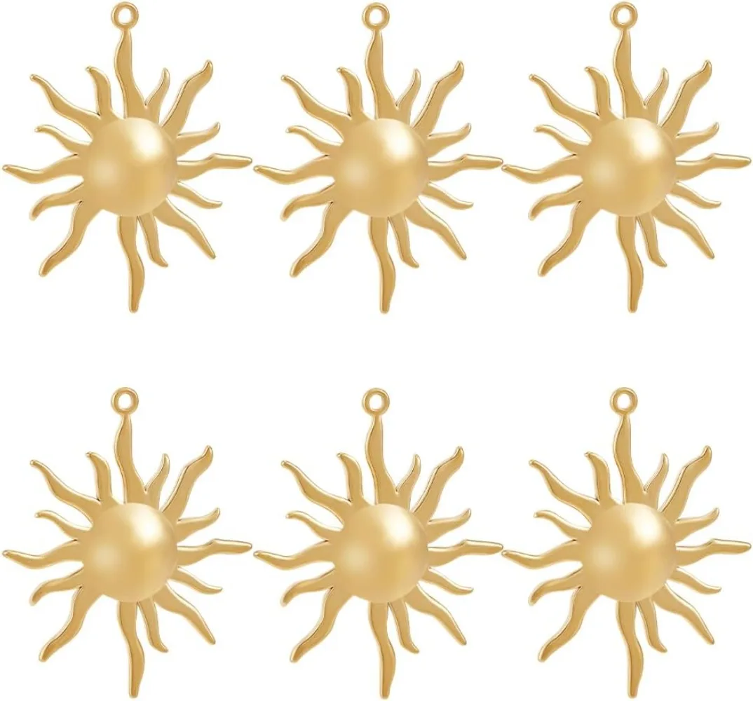 Sé el primero en valorar “6 uds. De dijes de sol chapados en oro de 18 quilates, colgantes de girasol Celestial redondos planos de acero inoxidable, dijes para kit de fabricación de joyas”