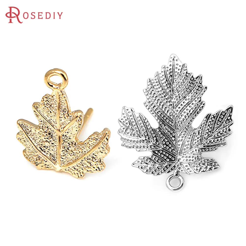6 uds. Pendientes de tuerca de hoja de árbol de latón de Color dorado de 18K, pendientes de alfileres, suministros de joyería Diy de alta calidad, accesorios
