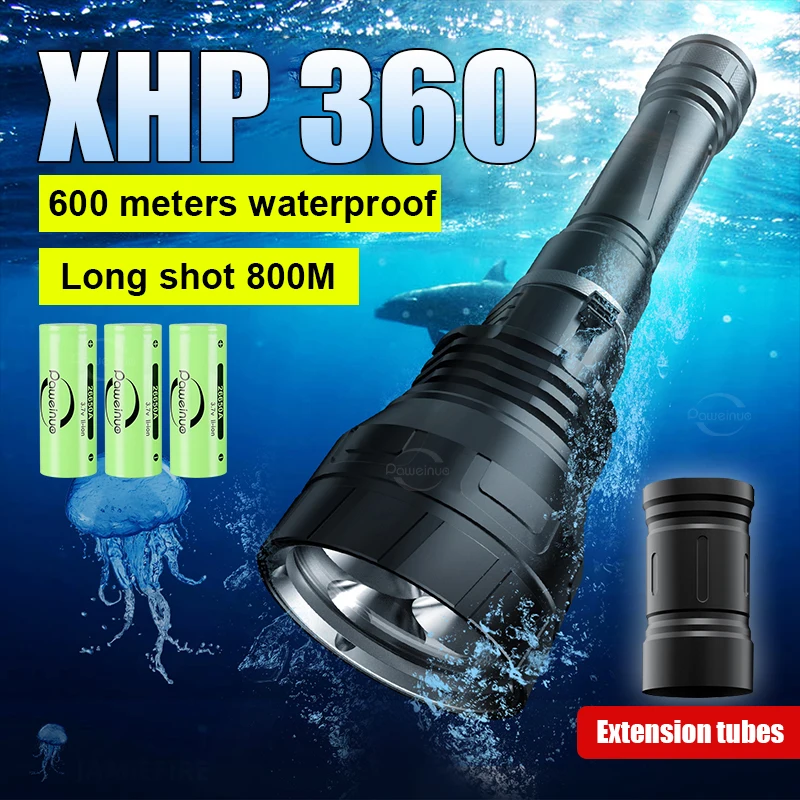 60000LM Super potente linterna de buceo XHP360 antorcha de buceo profesional de alta potencia led linterna IPX8 luces submarinas