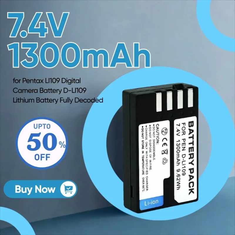 7,4 V 1300 mAh Adecuado para Pentax LI109 Batería para cámara digital D-LI109 Batería de litio totalmente decodificada