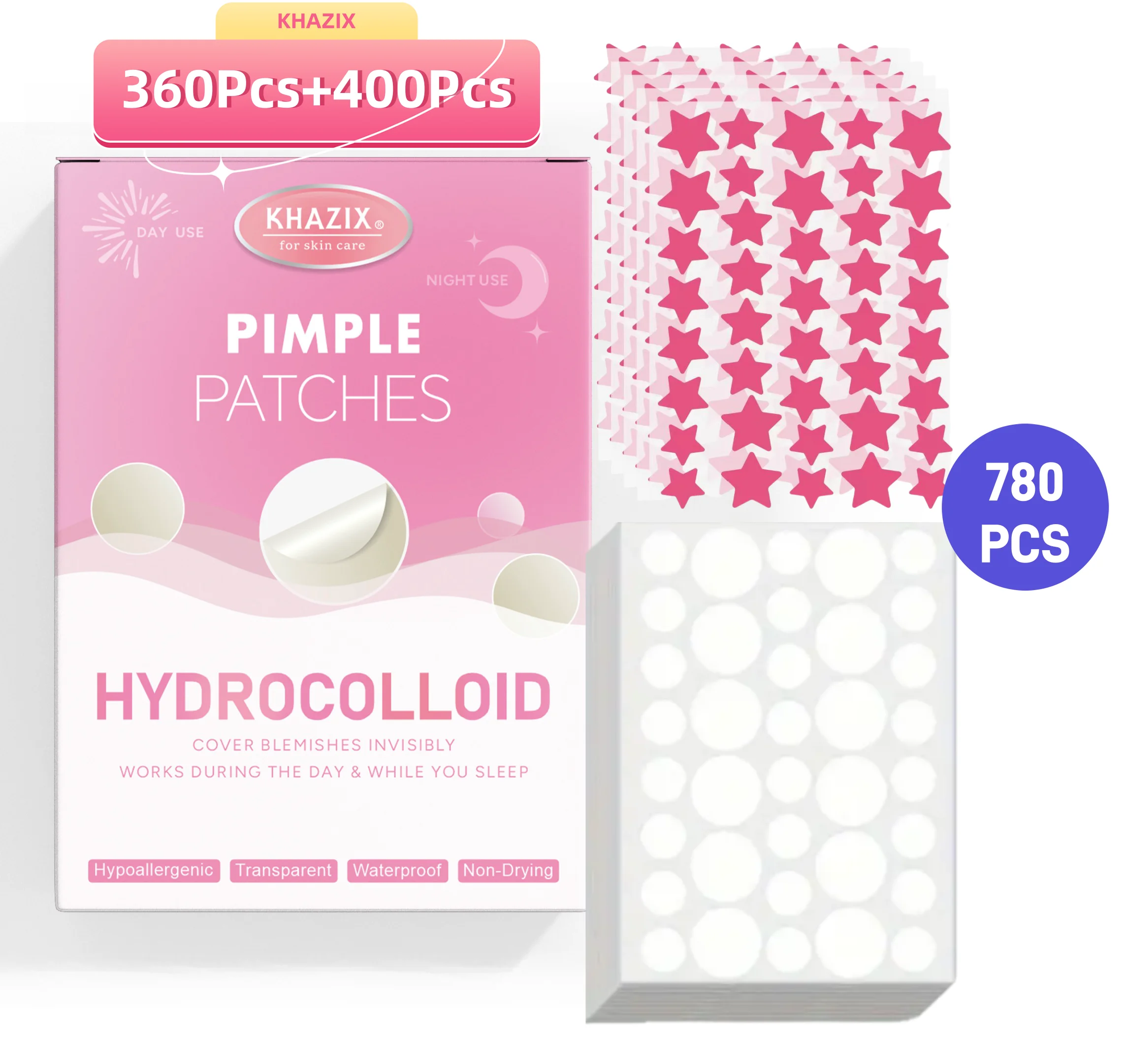 760 Uds. Adhesivo doble redondo para acné con estrella rosa, pegatina ultrafina impermeable, suave y no irritante para acné