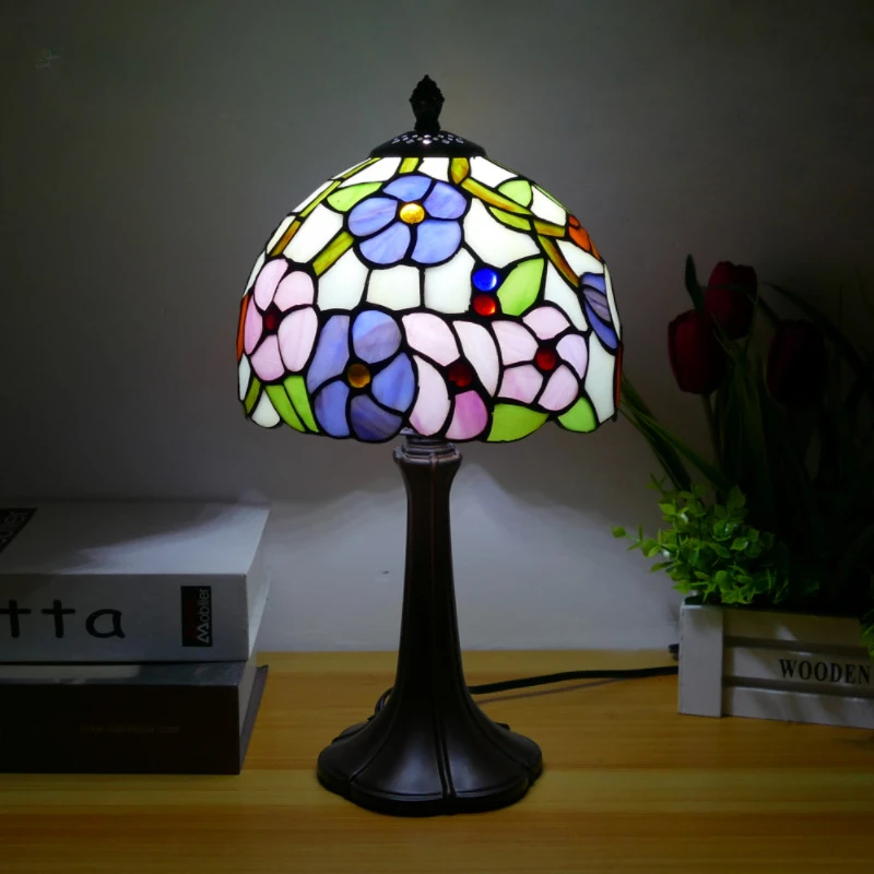 8 pulgadas americano Tiffany vitral Pastoral Morning Glory cúpula sombra E26 granja mesa luz dormitorio mesita de noche lámpara de escritorio
