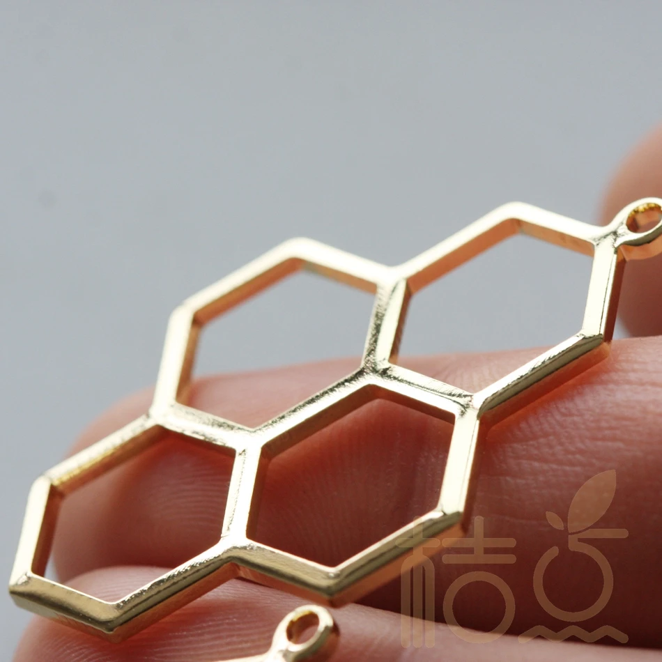 Abalorio de peine de miel con base de latón chapado de primera calidad, 41,7×27,2 mm (3924C)