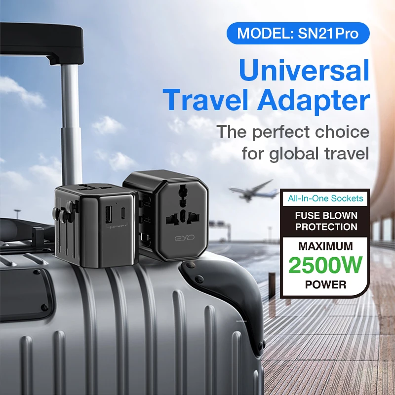 Adaptador de viaje Universal Global 2025, enchufes USB, convertidor de adaptador de corriente CA con bloqueo de seguridad de protección infantil para AU, EE. UU., Reino Unido y UE