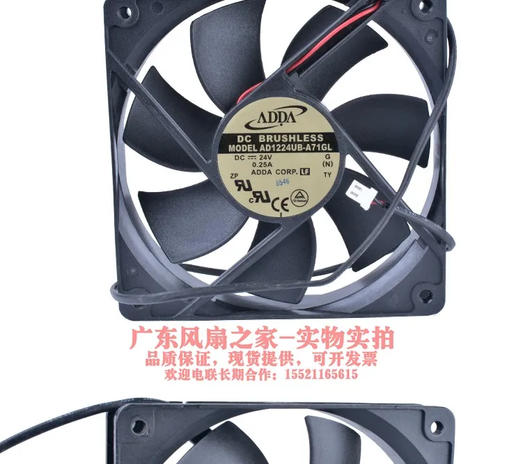ADDA AD1224UB-A71GL 24V CC 0.25A 120x120x25mm Ventilador de refrigeración de 2 cables