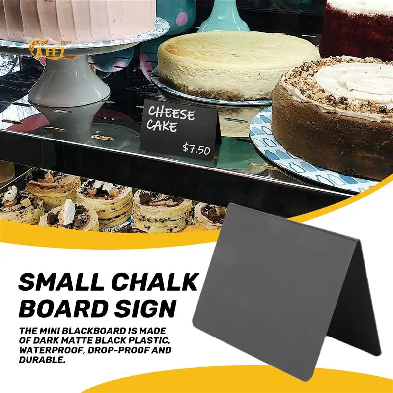 AEE7-12 Uds Mini carteles de pizarra 4X3 pulgadas pizarra pequeña letrero de tiza etiquetas de alimentos para mesas de Buffet de fiesta, fácil de escribir