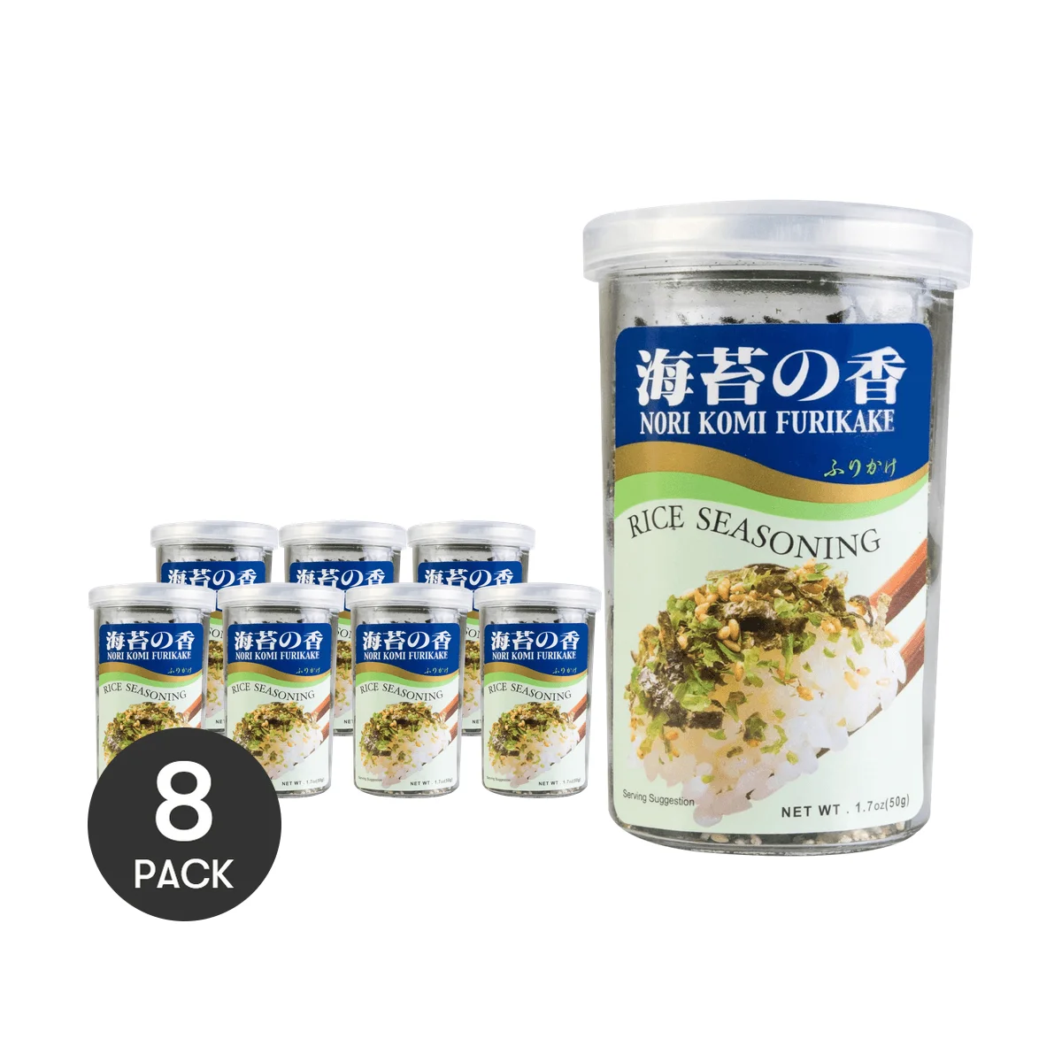 AJISHIMA Nori Komi Furikake-condimento de arroz japonés, potenciador de sabor, 1,7 oz x 8 paquetes, 8 paquetes