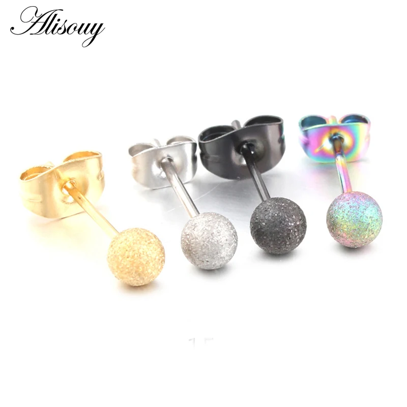 Alisouy, 2 uds., nuevo Color plata, acero inoxidable, bola esmerilada, pendientes redondos para oreja para mujer y hombre, joyería Piercing de moda