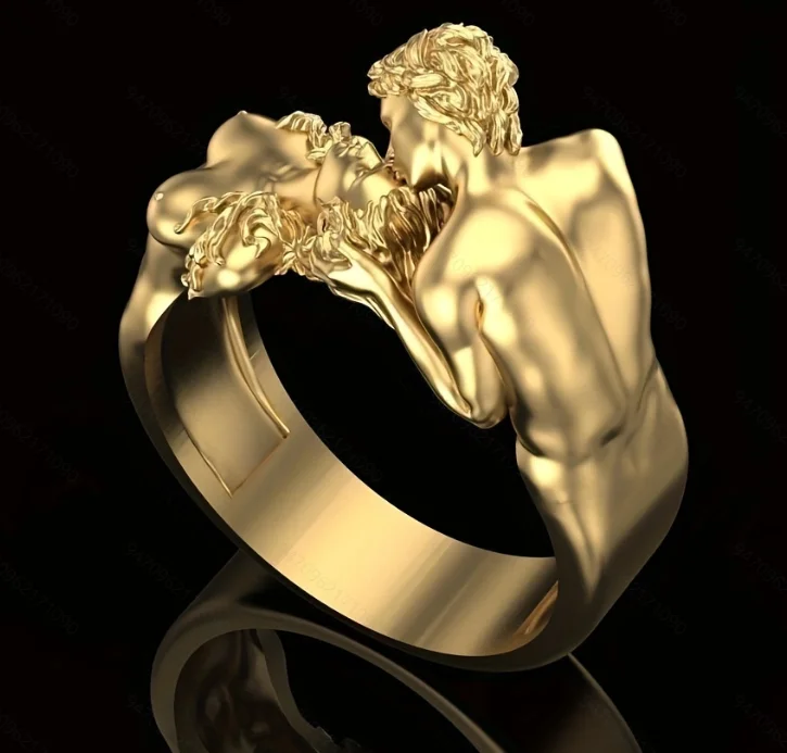 Anillo abierto de moda europea y americana, joyería de pareja, abrazo, anillo de beso