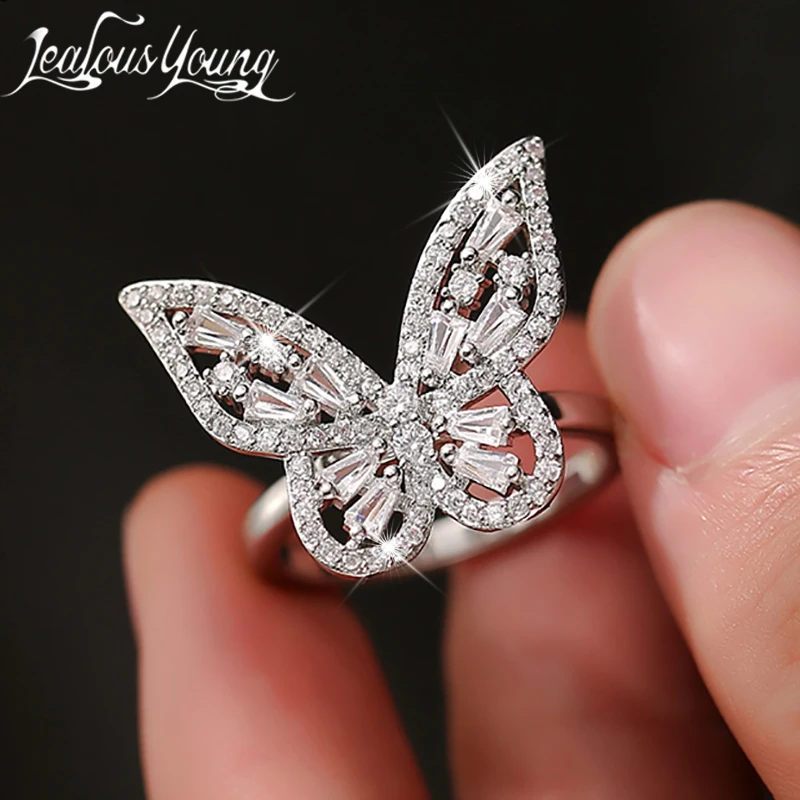 Anillo de circonia cúbica para mujer, sortija ajustable con forma de mariposa, joyería de lujo