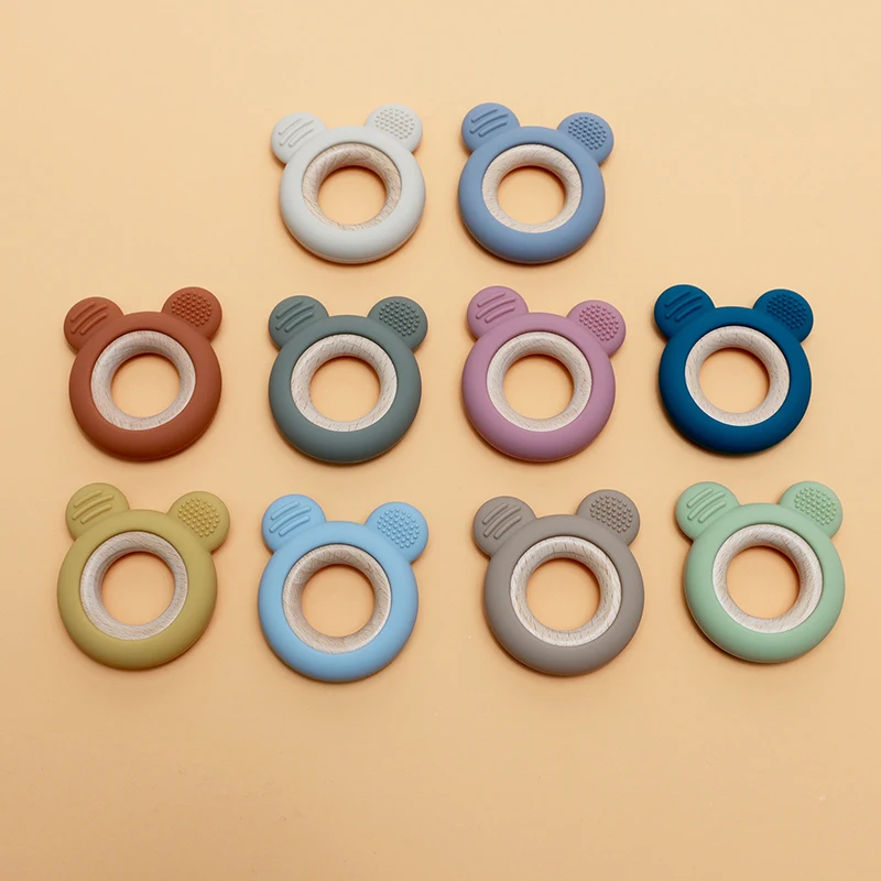 Anillo de mordedor de madera con forma de dibujos animados para bebé, juguete de grado alimenticio para niños, accesorios para juguetes de dentición, 1 ud.