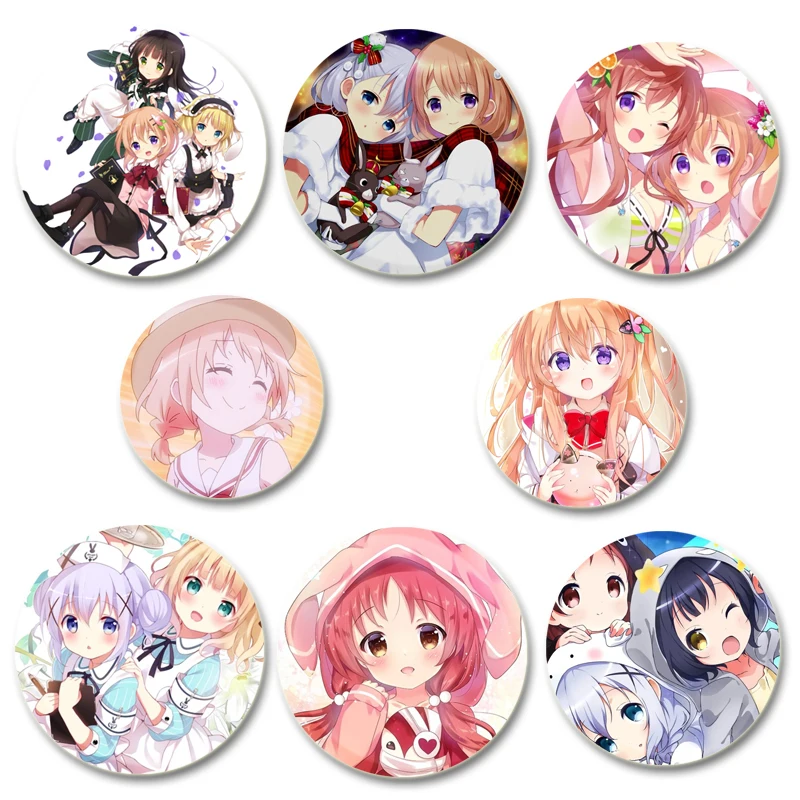 Anime Is The Order A Rabbit Button Pins Kafuu Chino Hoto Kokoa Cartoon Badge Round Creative Brooches Jewelry Accessories Gifts