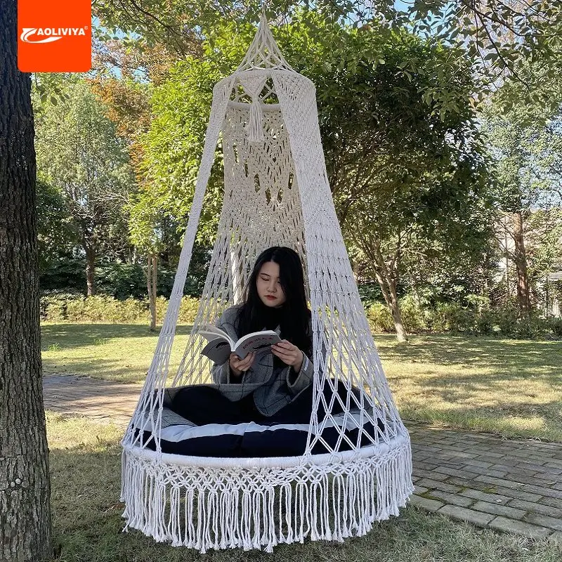 AOLIVIYA-hamaca de cuerda hecha a mano, columpio interior, dormitorio, hogar, balcón, patio al aire libre, cuna perezosa, hamaca de celebridad de Internet