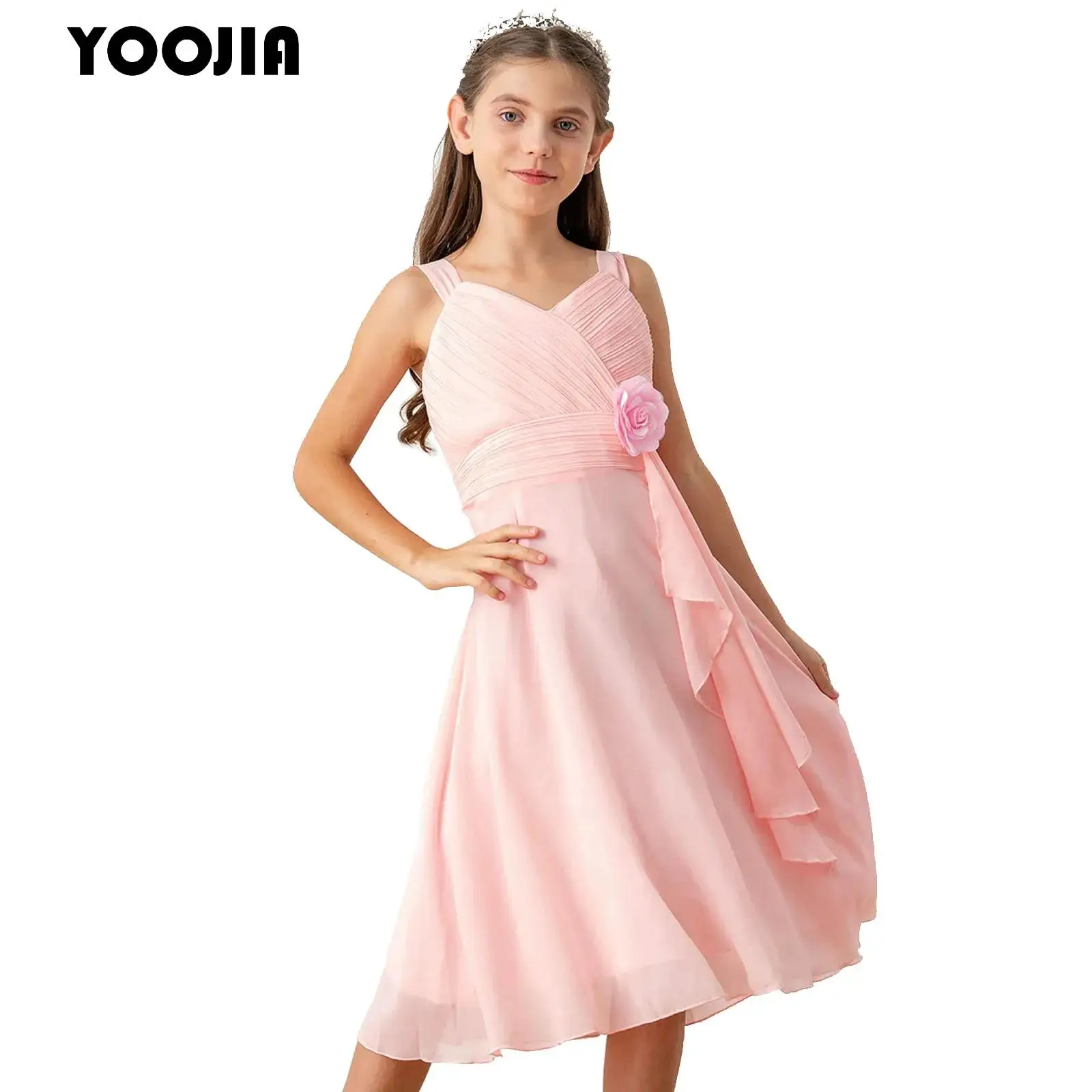 Apliques niños vestidos de flores para niñas elegante sin mangas corpiño fruncido vestido de gasa para fiesta de princesa boda cumpleaños vestido de graduación