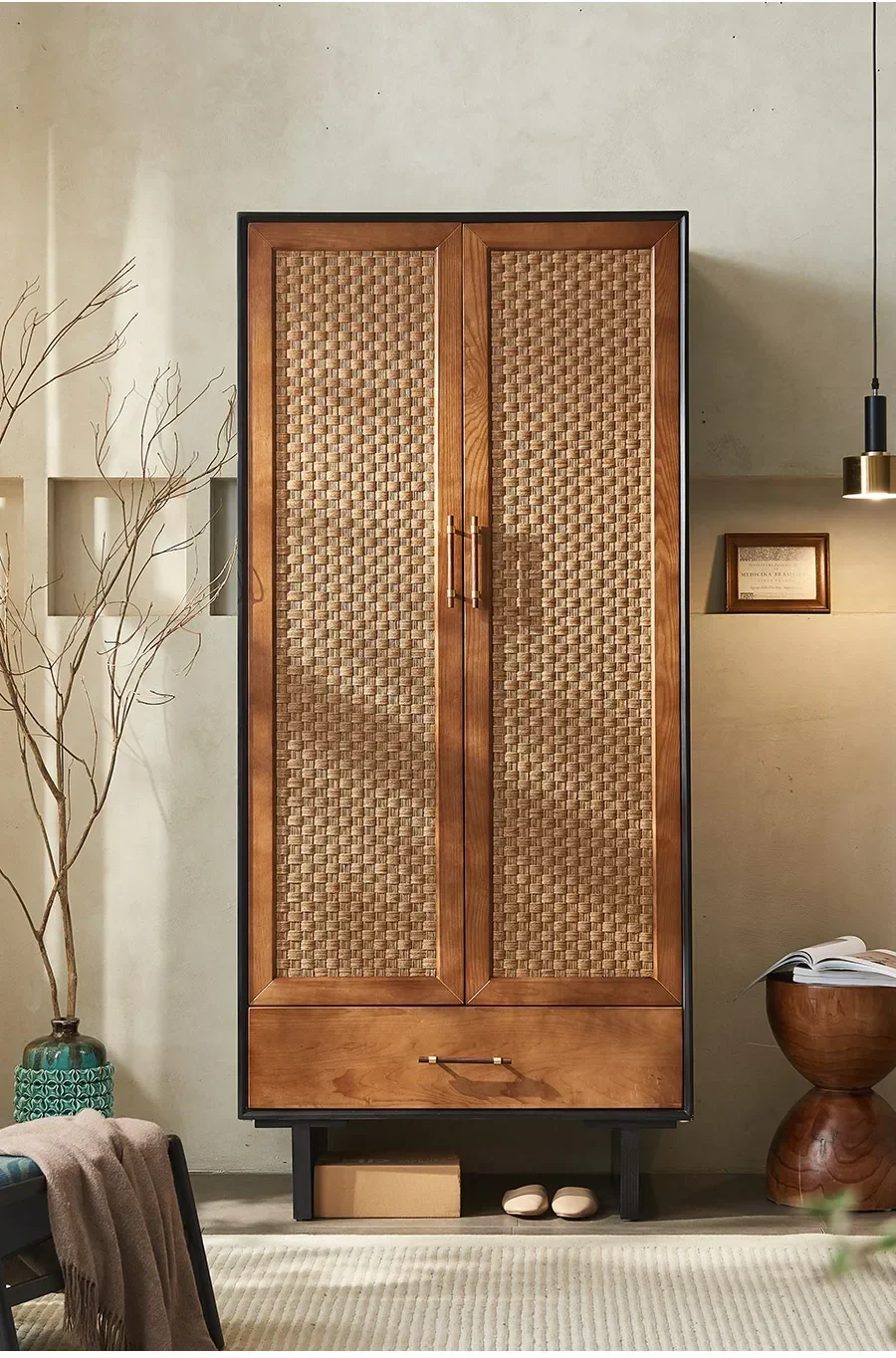 Sé el primero en valorar “Armarios Retro para dormitorio b & B, armario grande de doble puerta, armario de almacenamiento de ratán de madera maciza de estilo medieval”